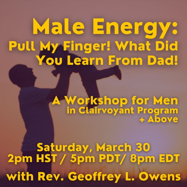 Male Energy Workshops: (Usually) Last Saturday of each month at 5pm Pacific / 8pm Eastern