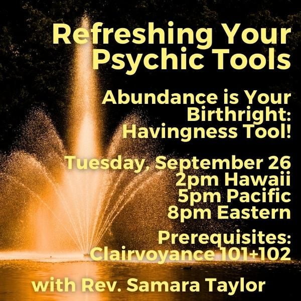 The psychic tools you learn in Clairvoyance 101+102 provide a powerful foundation for spiritual growth and discovery. Whether you’ve been playing with your Clairvoyant tools for a few weeks, a few months, or many years – there’s always room to deepen your understanding and mastery of these fundamentals!